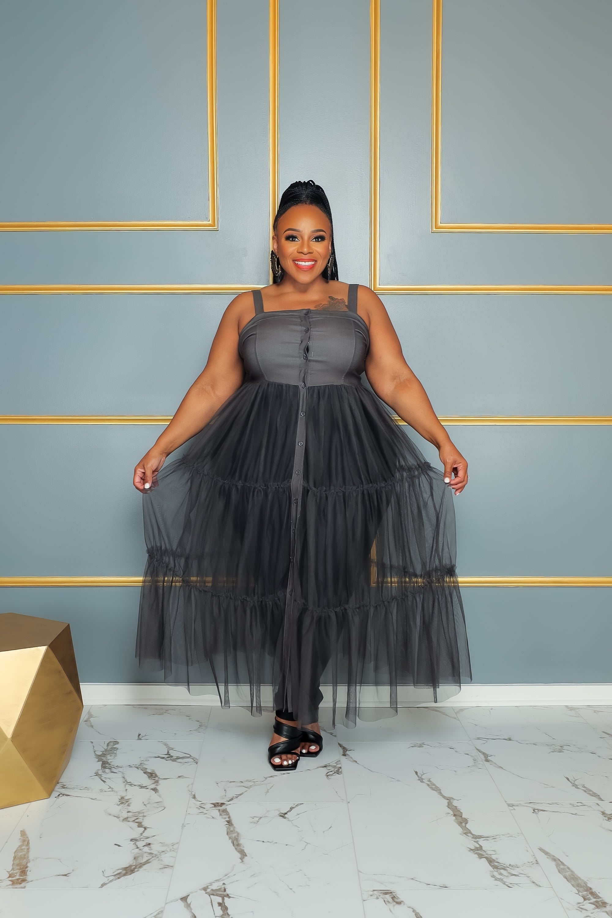 Ask Black Tulle Top