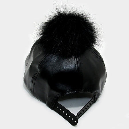 Black Pom Pom Baseball Cap