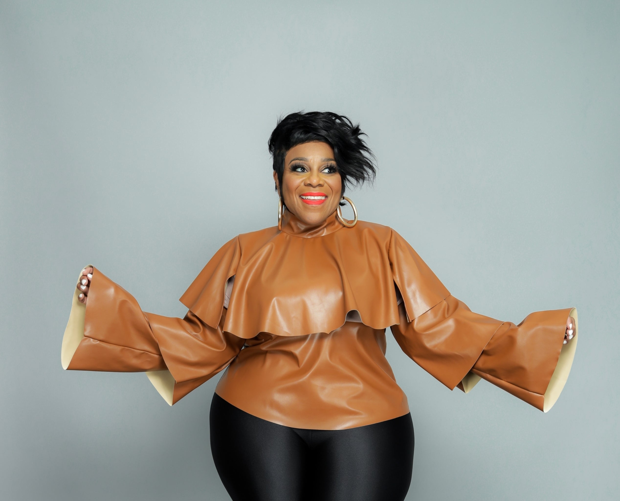 Cognac Tiered Vegan Leather Top