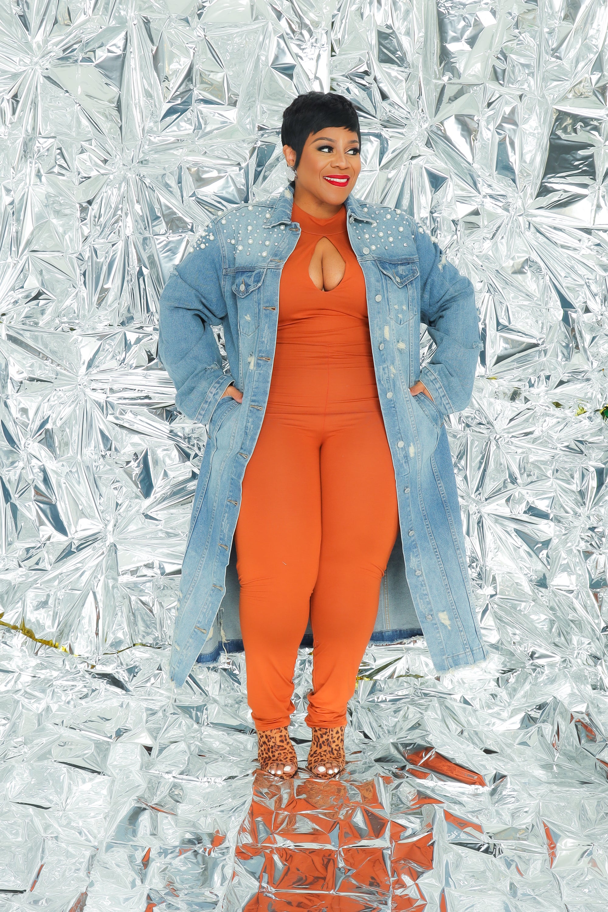 REVIEW COVID-19 RETURN POLICY TRUE TO SIZE  WEARING 1X 90% COTTON 10%POLYESTER HEIGHT 5'5 SHOWN WITH RUST TRIPLE THREAT CATSUIT