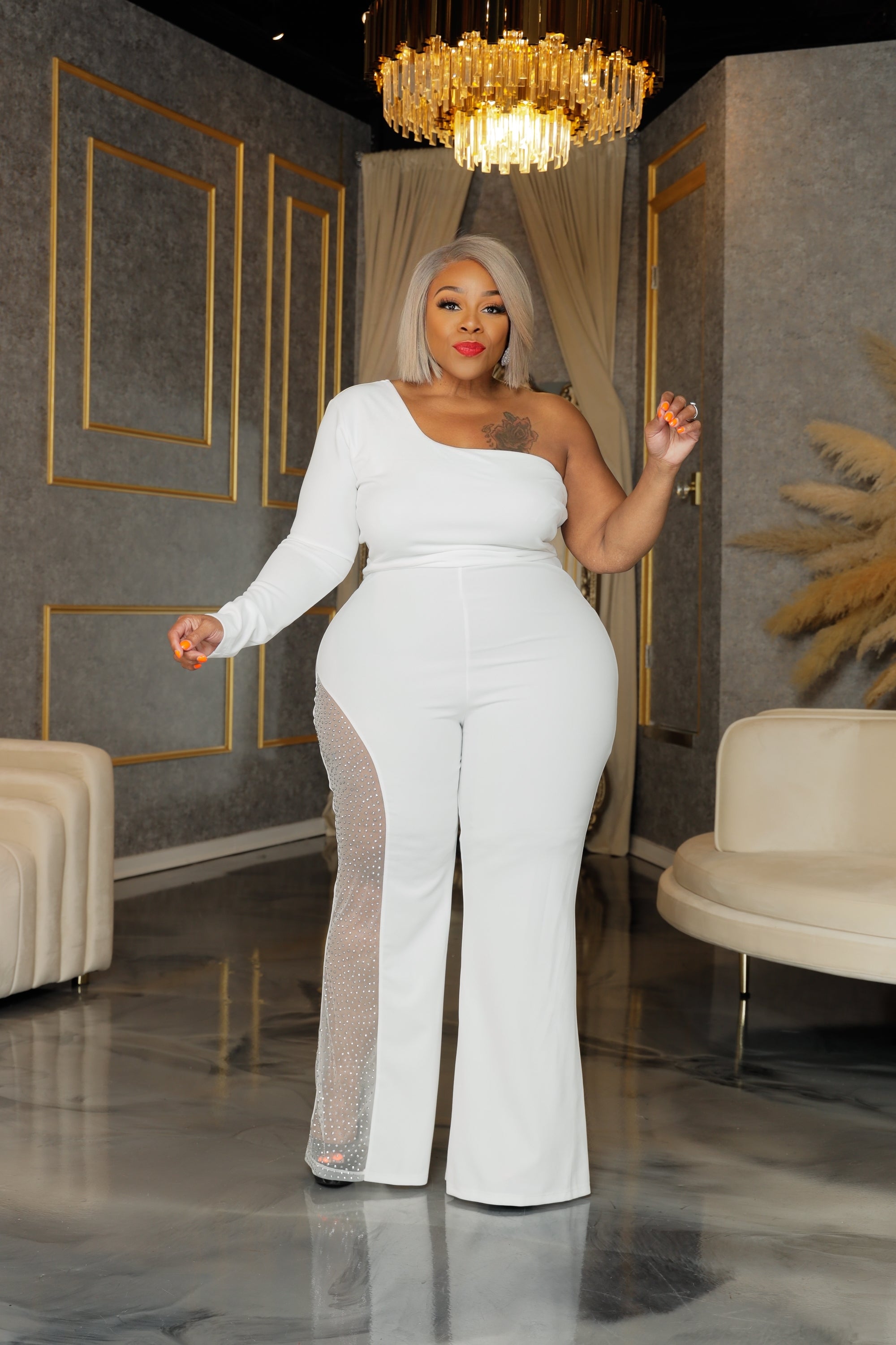 Ivory Glitter Panel Jumpsuit