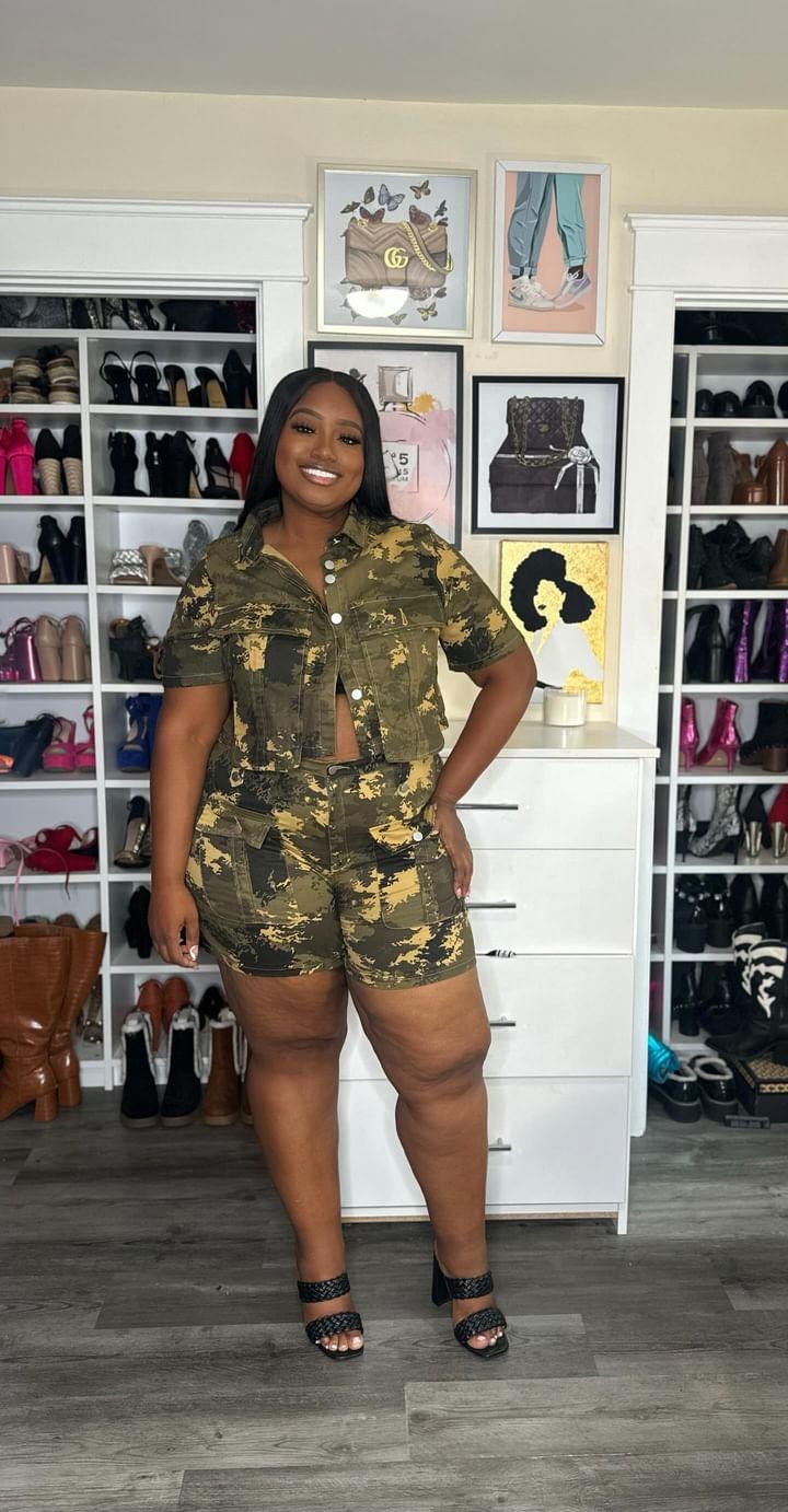 Review Return Policy True to Size Wearing 1X 70% Cotton 28% Polyester 2% Spandex Semi-stretch short set