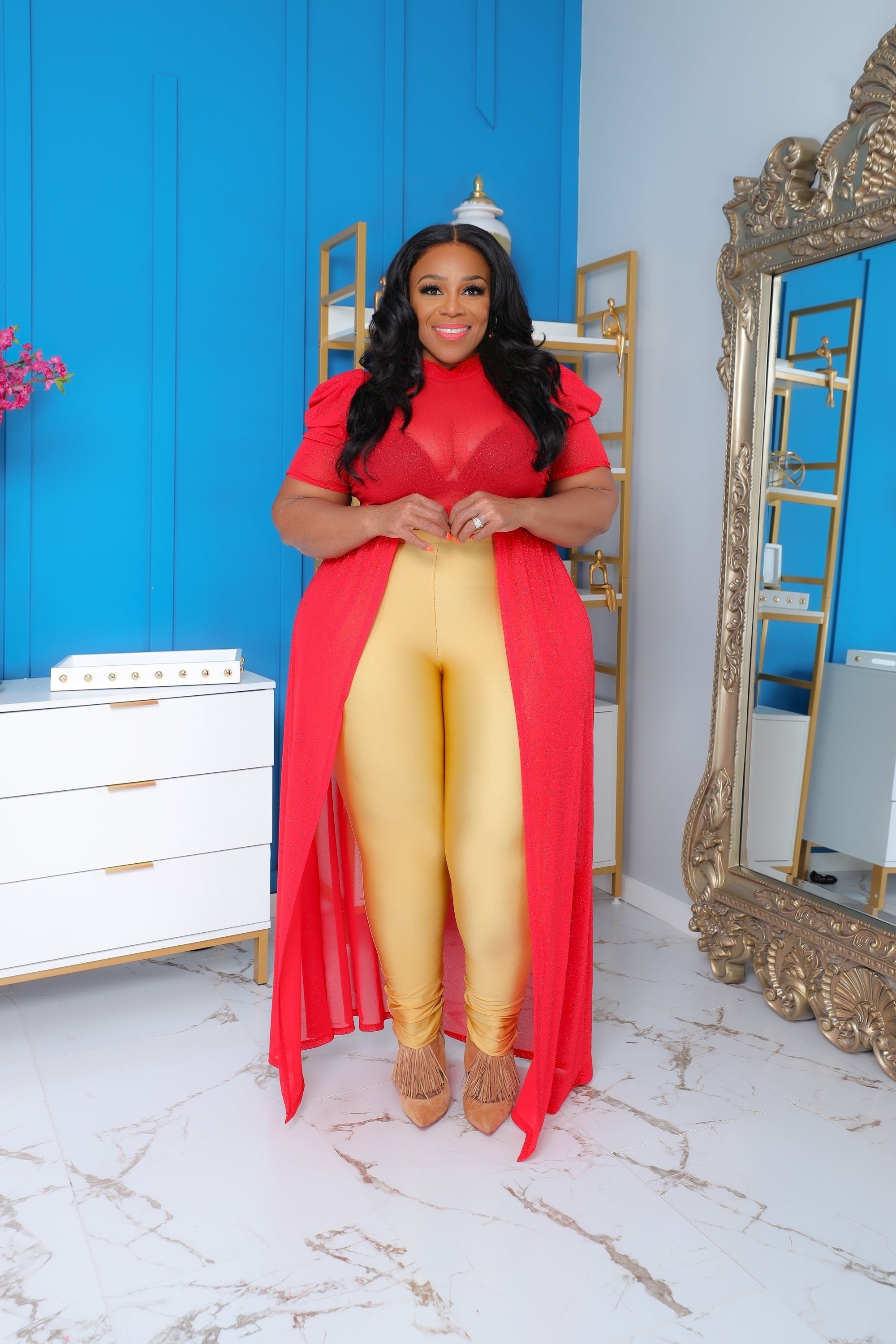 Red Shimmer Maxi Top