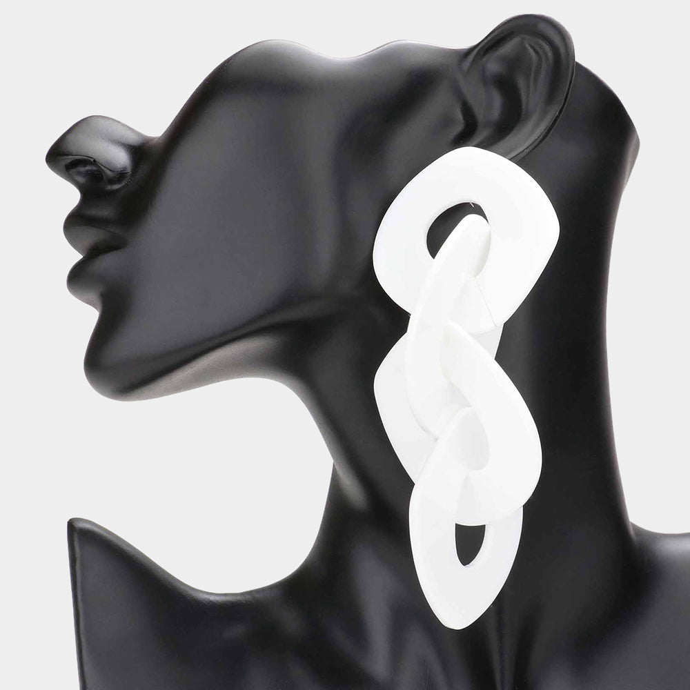 White Link Dangle Earrings